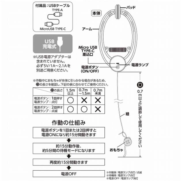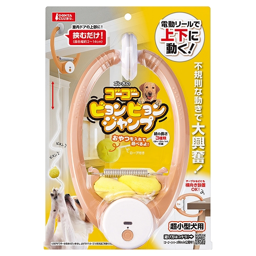 電動リールで上下に動く!不規則な動きで大興奮!室内のドアの上部に挟むだけ(適合幅:2~14㎝以内)テーブルなどにも横向き設置OK!おやつを入れて遊べるよ!
