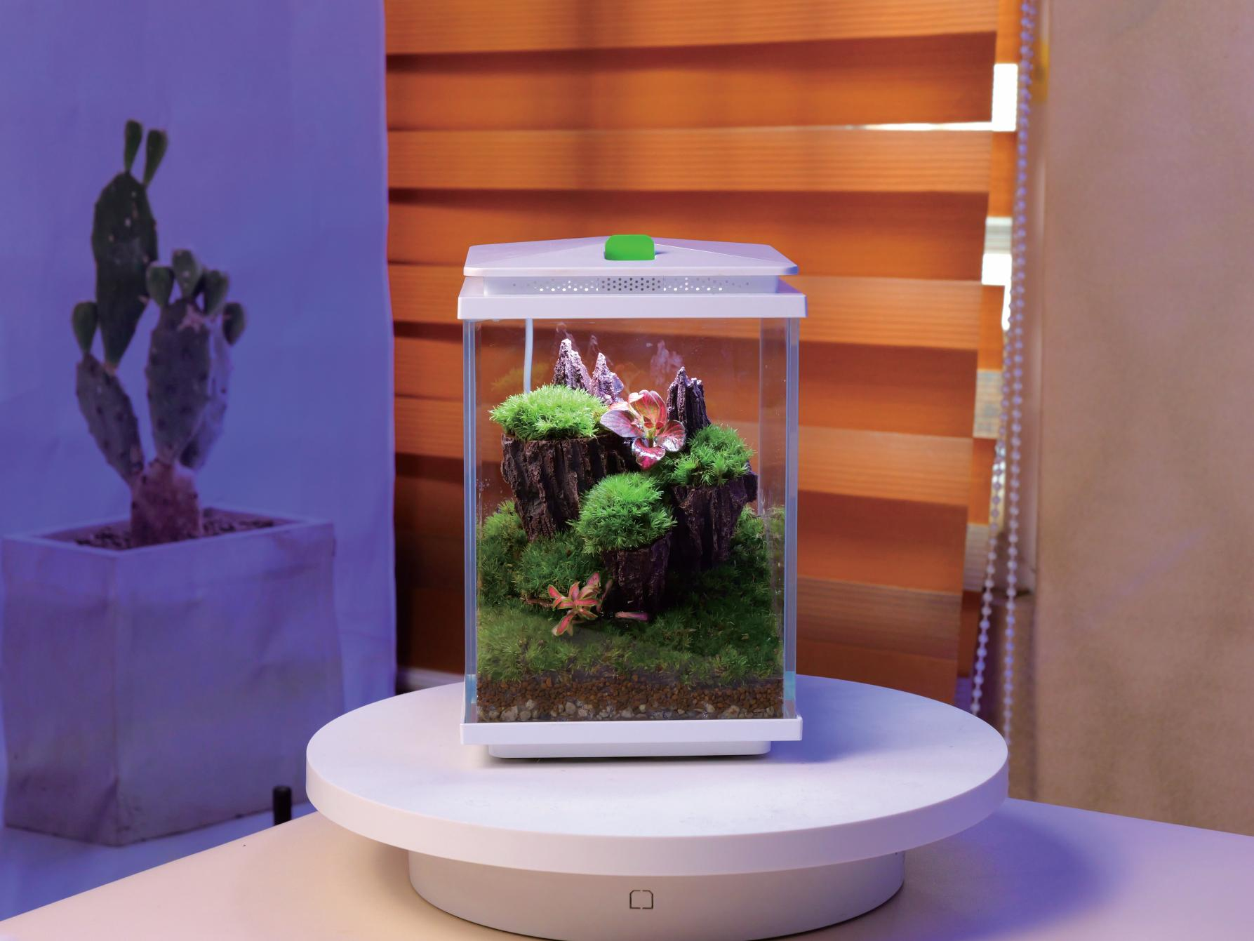 中空で透け感のある植栽鉢を組み合わせ、新しく独創的なデザインで人工景観と自然の要素を一体化。