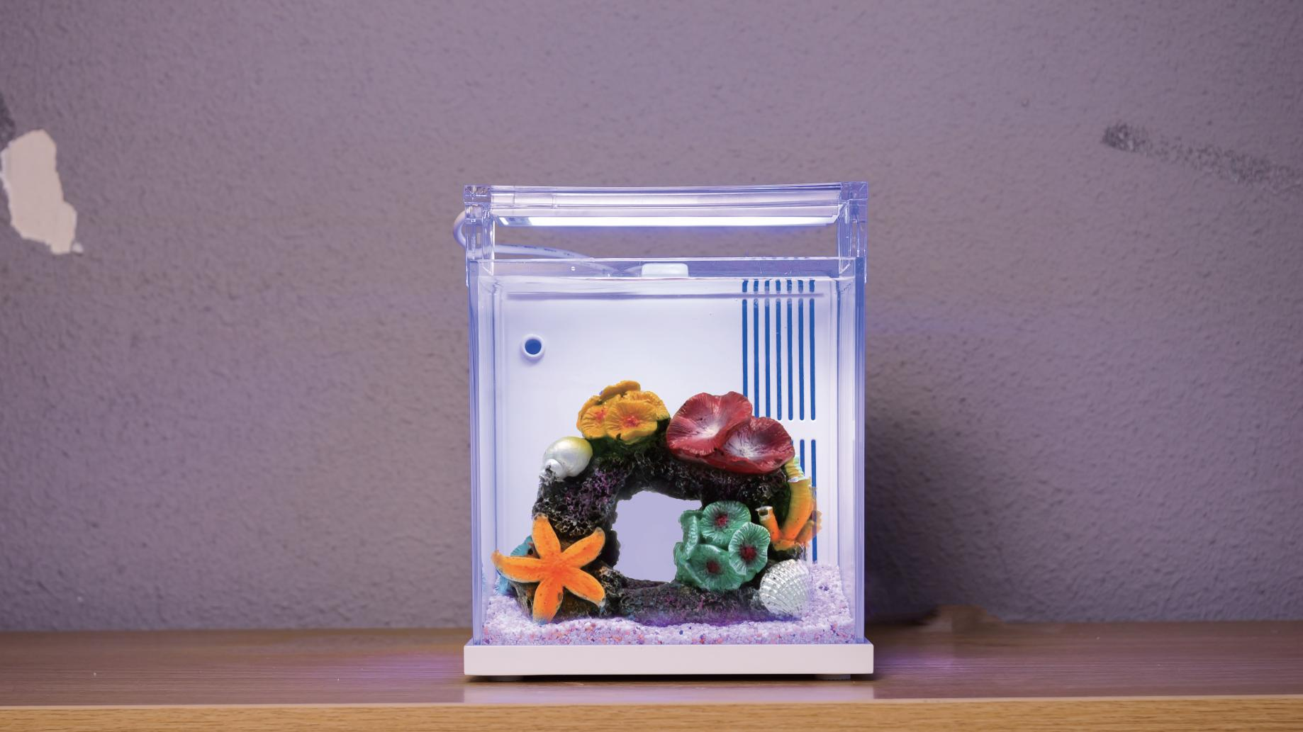 リアルな海の景観を再現したサンゴで、色とりどりの水槽を作り、海中の暮らしを体験できます。