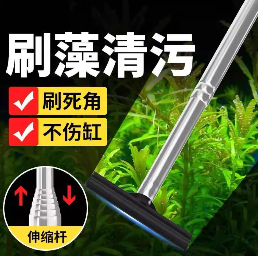 新款硅胶清洁刷可伸缩鱼缸清洗用具水族箱不伤鱼缸壁家用除藻刀...